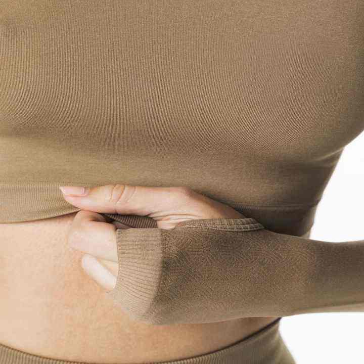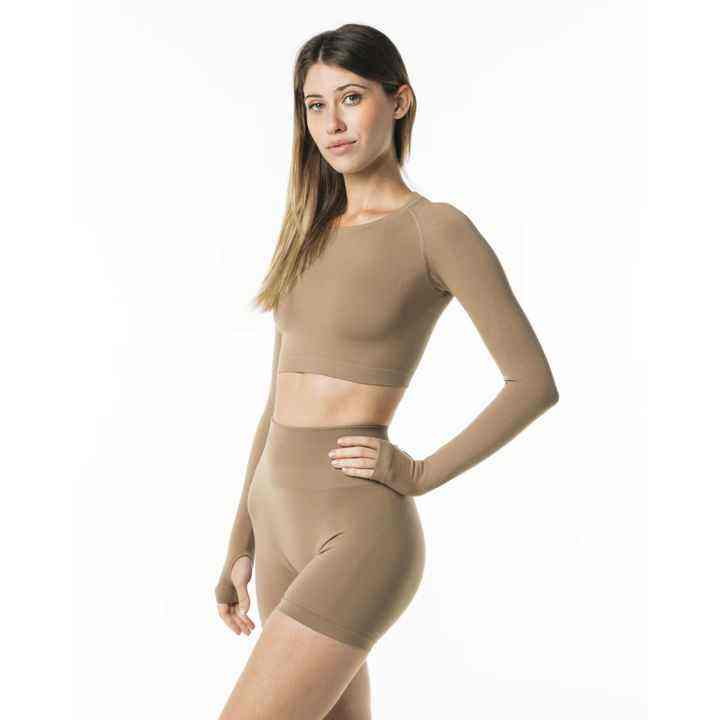 เสื้อเชิ้ตแขนยาวไร้ตะเข็บสำหรับผู้หญิงเสื้อฮิปฮอปโพลีเอไมด์38% โพลีเอสเตอร์11% อีลาสเทนคอเสื้อลูกเรือแบบ51%