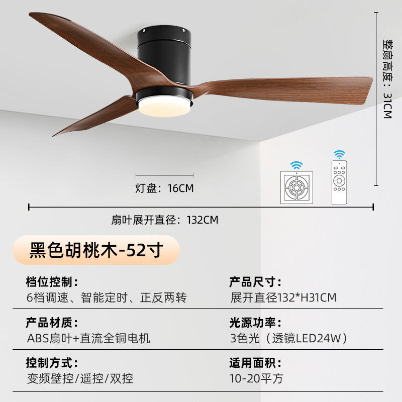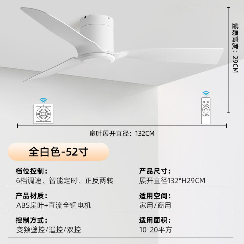 พัดลมเพดาน BlDC ขนาด52นิ้วมอเตอร์ทองแดงทั้งหมด3ใบพัด ABS พร้อมรีโมทคอนโทรลพัดลมเพดาน