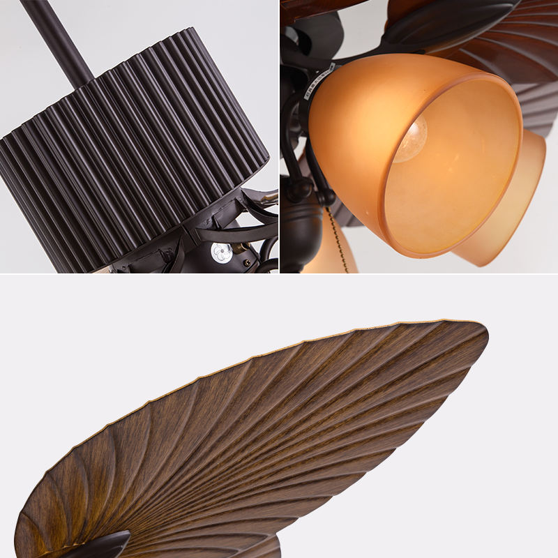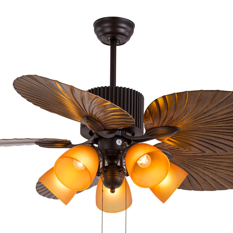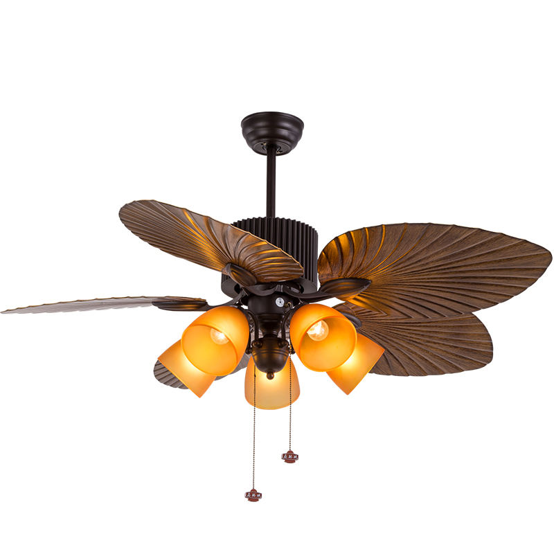 พัดลมเพดานสไตล์ชนบทเอเชียตะวันออกเฉียงใต้ขนาด 52 นิ้ว พร้อมโคมไฟทรงใบปาล์มแบบโบราณ