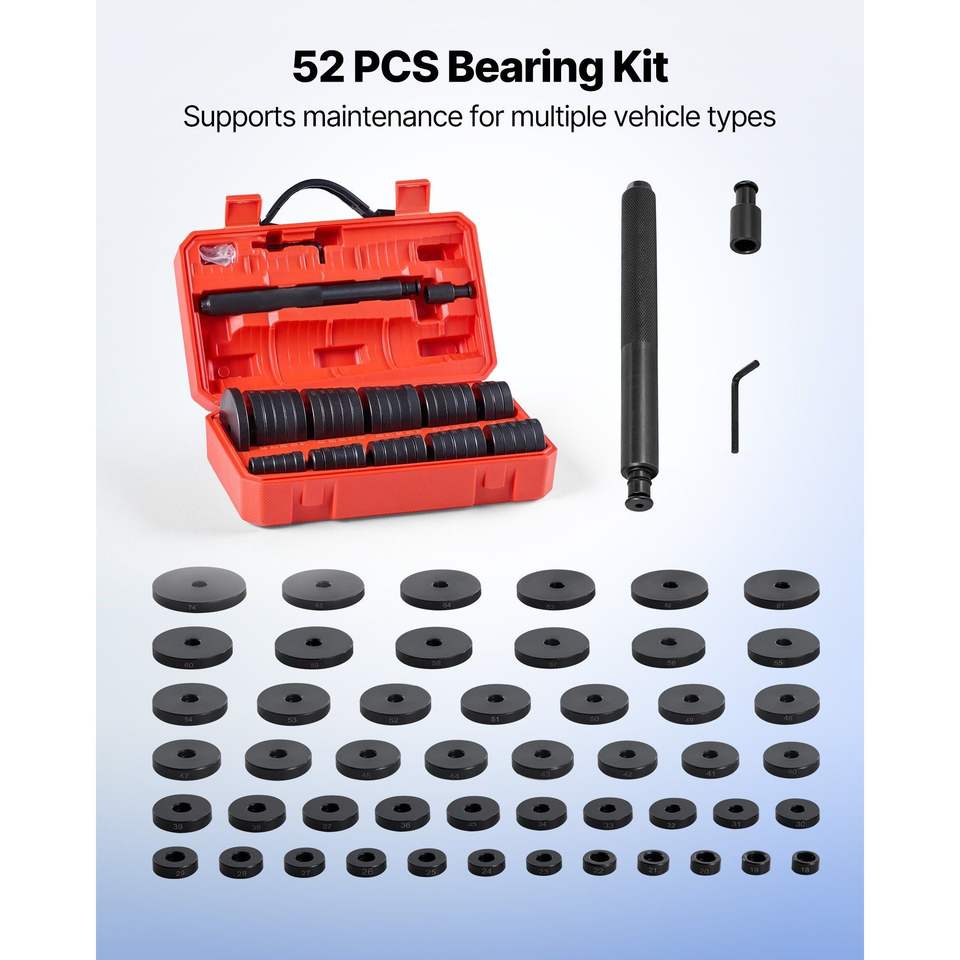 ชุดเครื่องมือซ่อมรถยนต์แบบหนัก 52 ชิ้น ชุดอุปกรณ์กดลูกปืนพร้อมตัวขับซีลลูกปืน ด้ามจับบูช และเครื่องมือขับบูชเพลา