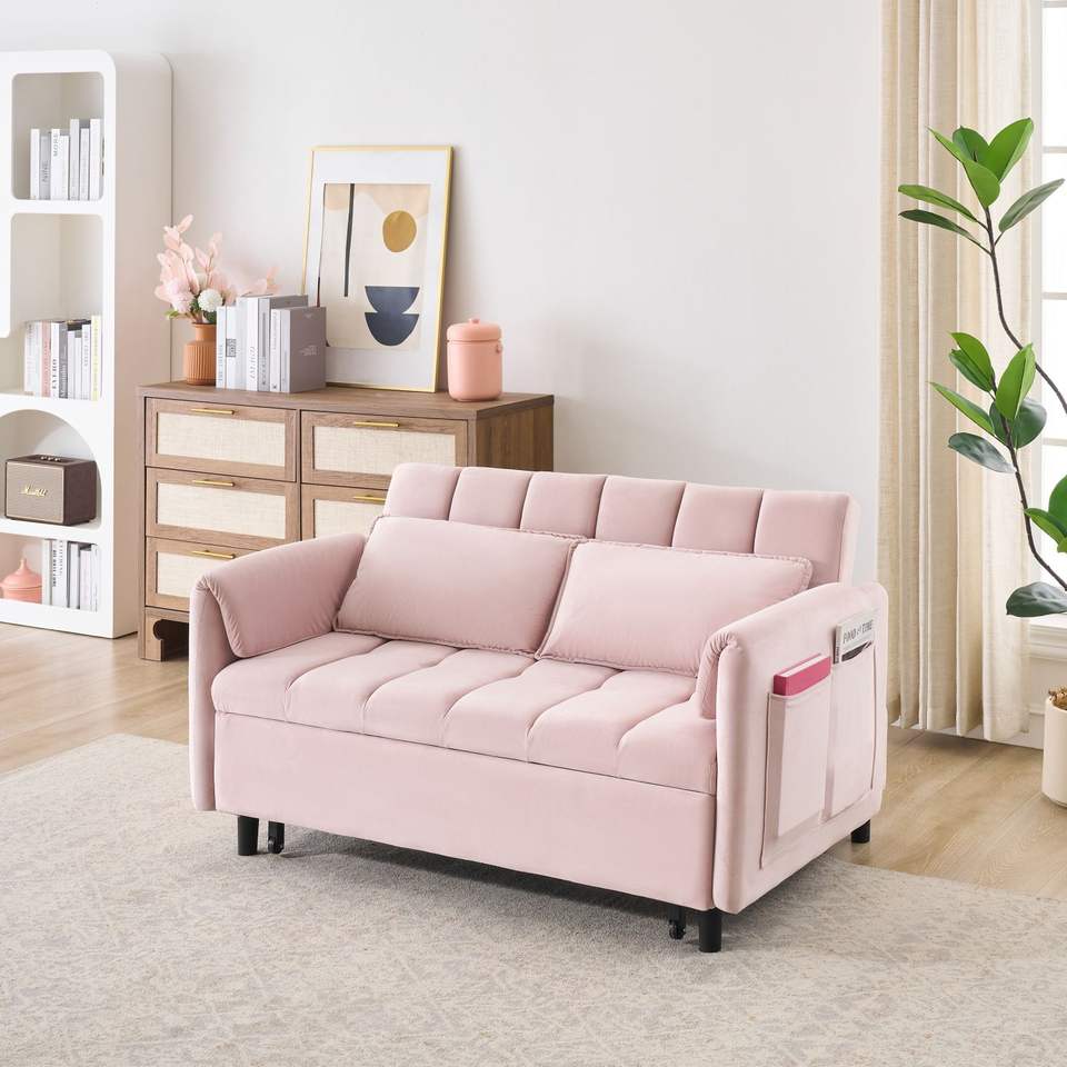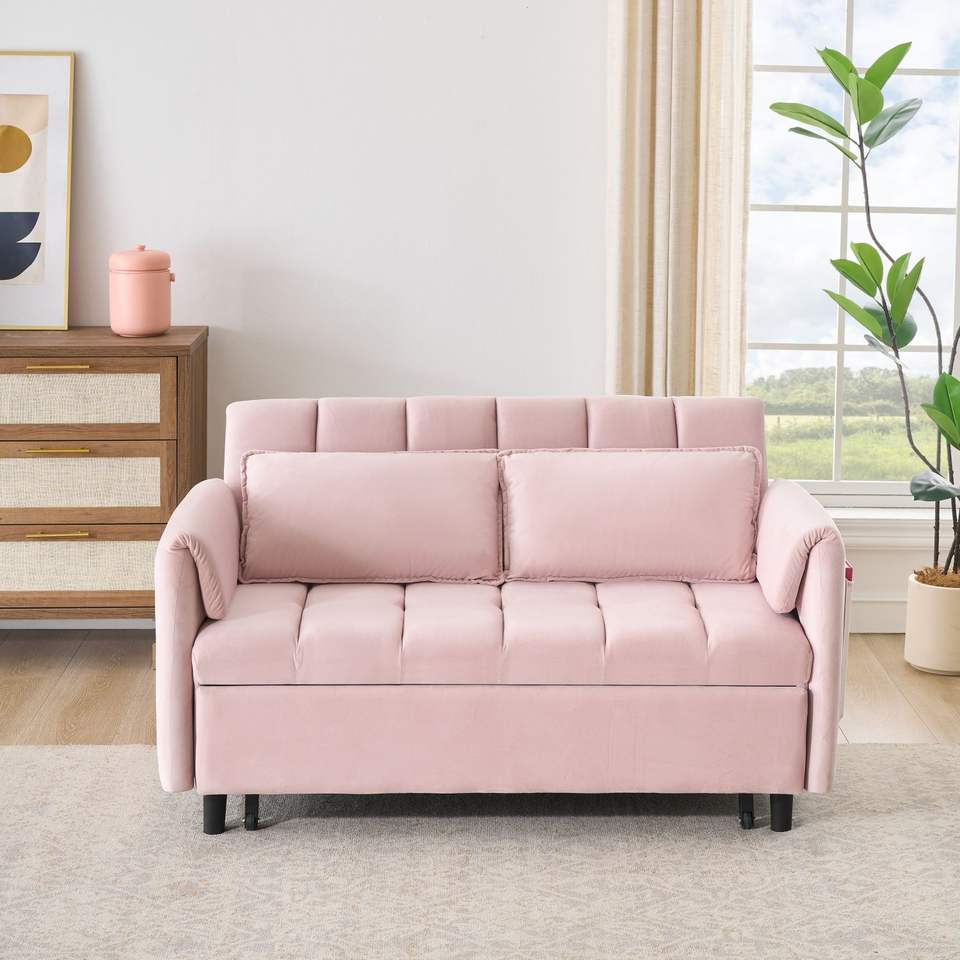 52\" Pink Modern Velvet Convertible Sleep Sofa Bed Pull-Out Mechanism 3 1 Casual Living Room Furniture Small Love Seat Back