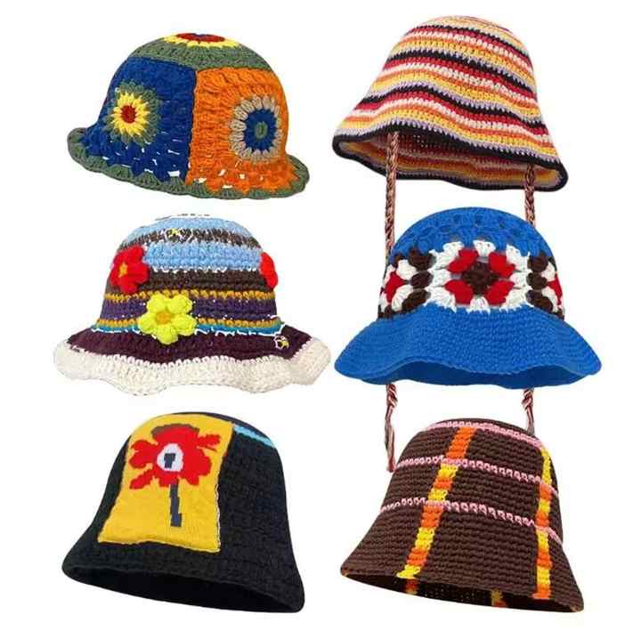 52 Styles Casual Foldable Floppy Beach Sun Hat Trendy Handmade Floral Knitted Beanie Cap Knit Crochet Bucket Hat