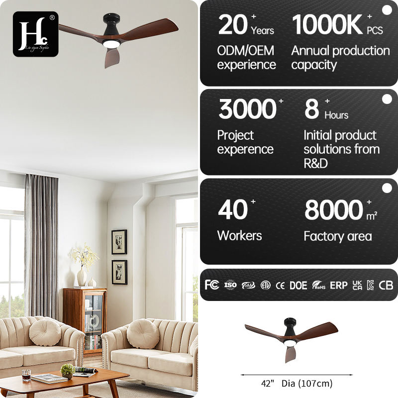 พัดลมเพดานเชิงพาณิชย์ขนาด 52 นิ้ว พร้อมไฟ LED ใบพัดไม้ ดีไซน์สวยงาม ควบคุมด้วยรีโมท พัดลมเพดาน LED ระบายความร้อน