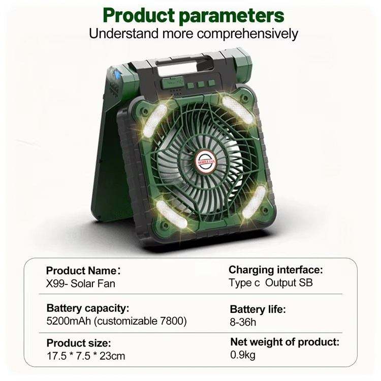 ชื่อผลิตภัณฑ์:พัดลมตั้งแคมป์พลังงานแสงอาทิตย์