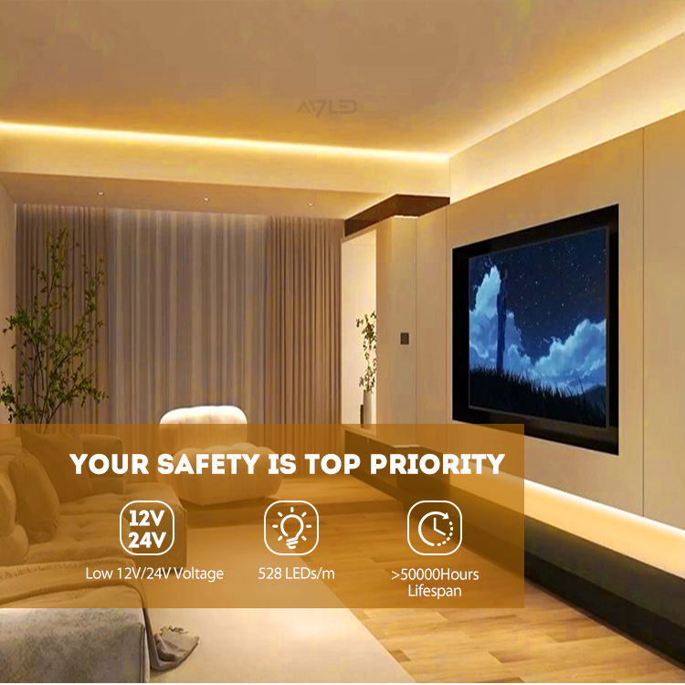 Product name:24v 12v flexible cob led strip 8mm 528 leds for wall celling