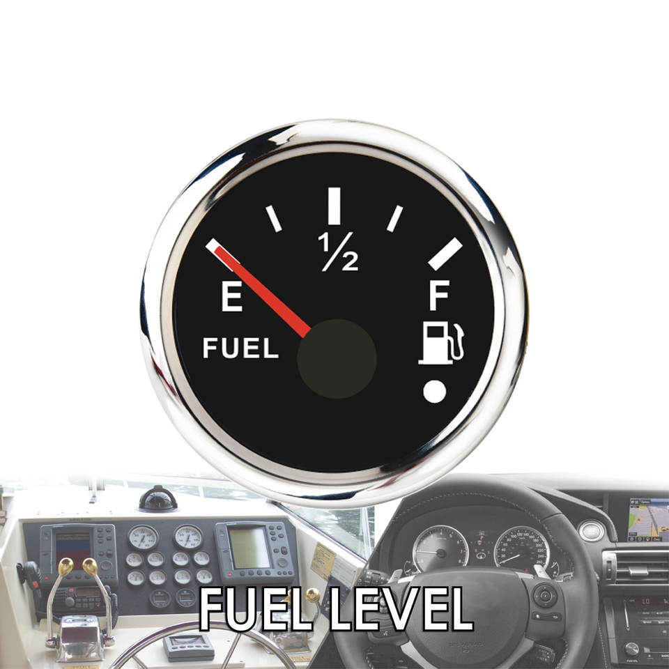 52มม. อะนาล็อกสีขาวหน้ามาตรวัดระดับน้ำมันเชื้อเพลิงสีแดง