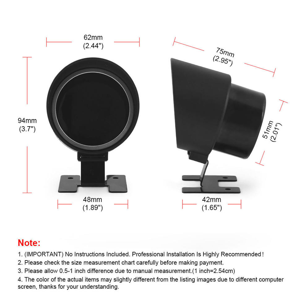 เกจวัดอุณหภูมิน้ำแบบดิจิตอลหน้าจอคู่ 52 มม. สำหรับเชฟโรเลต วัดได้ 1~99 องศาเซลเซียส + โวลต์มิเตอร์สำหรับ 10~24 โวลต์ 1/8NPT