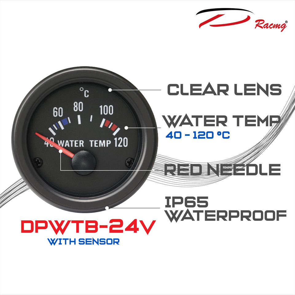 IP65กันน้ำ52มม. สำหรับมาตรวัดอุณหภูมิน้ำไฟฟ้าอัตโนมัติพร้อมเซ็นเซอร์24V VDC 40 ~ 120C ขอบสีดำปรับโฉมใหม่
