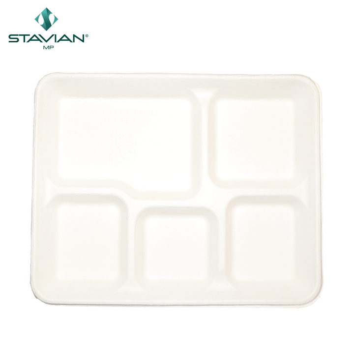 ที่ใส่อาหาร530มล. ถาดใส่อาหารทำจากชานอ้อยกันน้ำย่อยสลายได้ถาดใส่อาหารมี5ช่อง