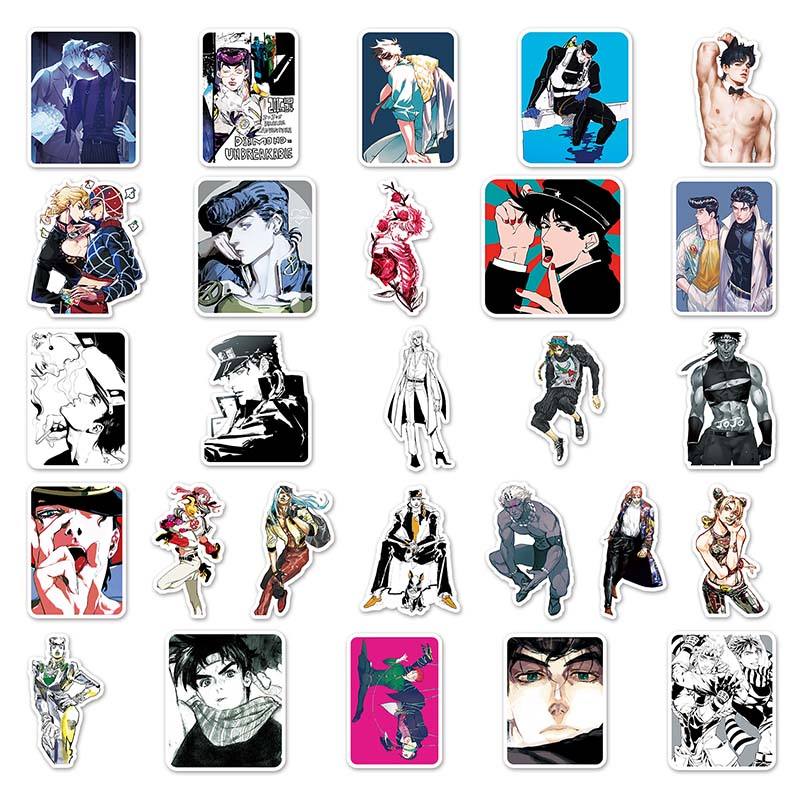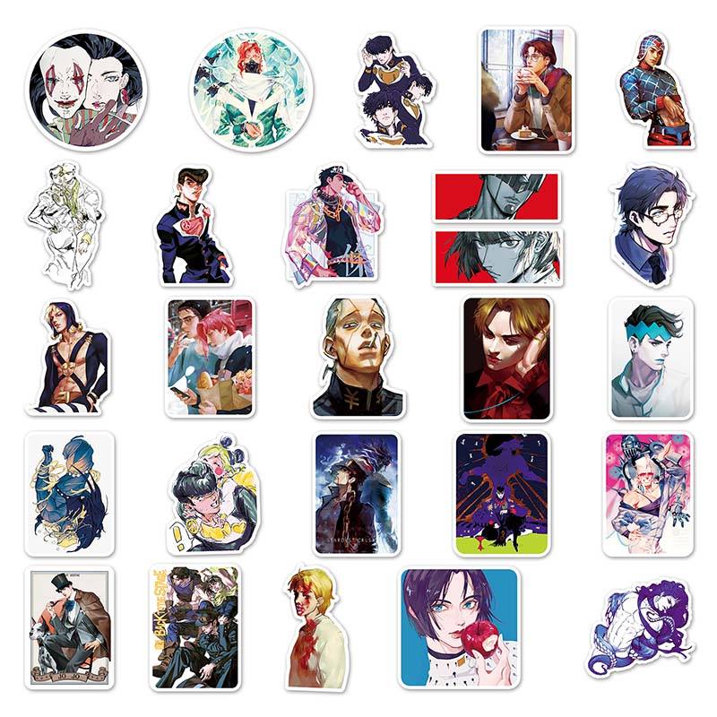 สติกเกอร์การ์ตูนอนิเมะแบบมีกาวในตัว53ชิ้นสติกเกอร์ PVC กันน้ำพิมพ์ลาย jojo jojo jojo