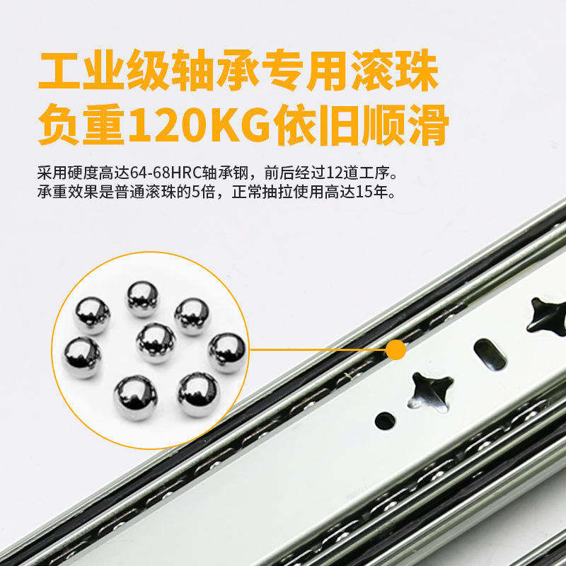 รางเลื่อนแบบหนาพิเศษขนาด 53 มม. พร้อมระบบปิดแบบนุ่มนวล ลูกปืนเหล็กสามส่วน สำหรับตู้ครัวและตู้ห้องนอนทันสมัย