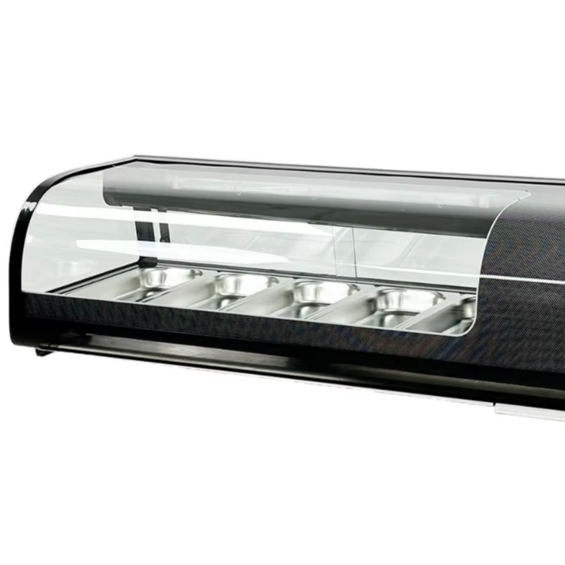 ตู้โชว์ซูชิแบบแช่เย็นขนาด 54 นิ้ว สำหรับวางบนเคาน์เตอร์เชิงพาณิชย์ 5 ช่อง พร้อมไฟ LED