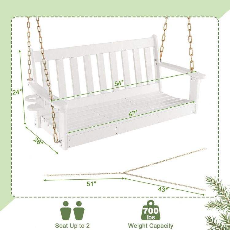 54-Inch HDPE Patio Porch Swing with Cup Holder for Outdoor Relaxation