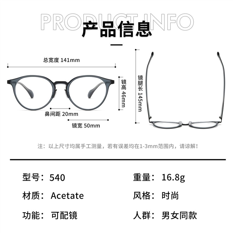 กรอบแว่นตาอะซิเตททำมือสไตล์สุภาพบุรุษ 540 รุ่นเซินเจิ้น น้ำหนักเบาพิเศษ ทรงลูกแพร์ สำหรับผู้หญิง