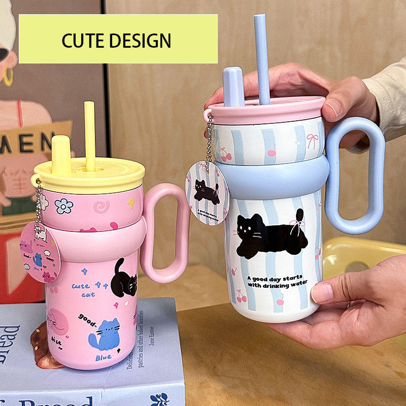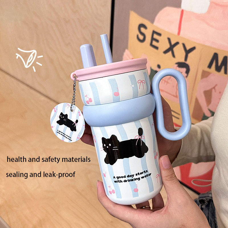 แก้วกาแฟฉนวนสุญญากาศสำหรับเด็กทำจากเหล็ก316พร้อมหลอดดูดผนังสองชั้นขนาด540มล.