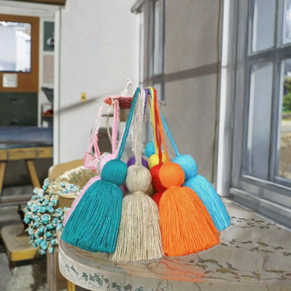 ม่านฝอยฝ้ายแนวตั้งแบบพู่คู่ 54 ซม. สำหรับตกแต่งโทรศัพท์มือถือ