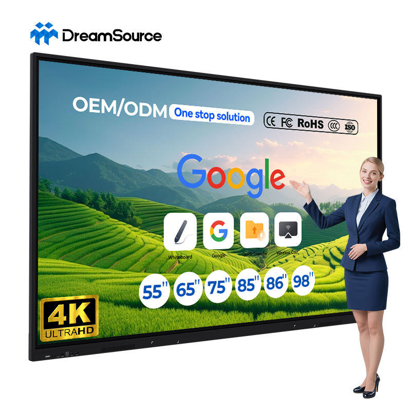 กระดานอัจฉริยะแบบอินเทอร์แอคทีฟ LCD ขนาด 55-110 นิ้ว ความละเอียด 4K UHD รองรับการสัมผัส 20-40 จุดด้วยปากกา/นิ้ว สำหรับโรงเรียนและการศึกษา