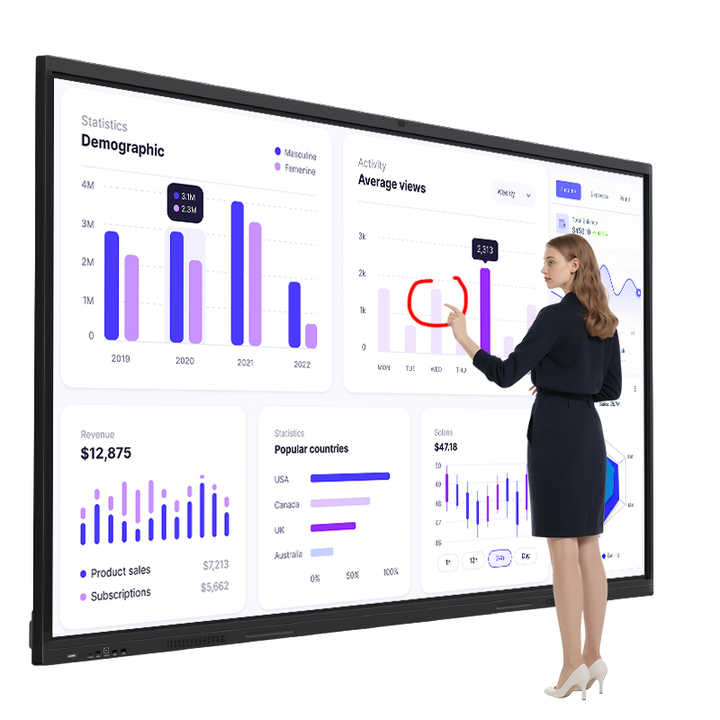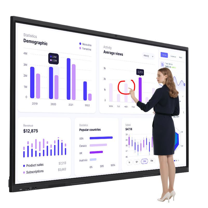 หน้าจอแสดงผลอัจฉริยะแบบสัมผัส LCD สำหรับการประชุม ขนาด 55 65 75 86 92 98 นิ้ว กระดานไวท์บอร์ดอิเล็กทรอนิกส์แบบอินเทอร์แอคทีฟ