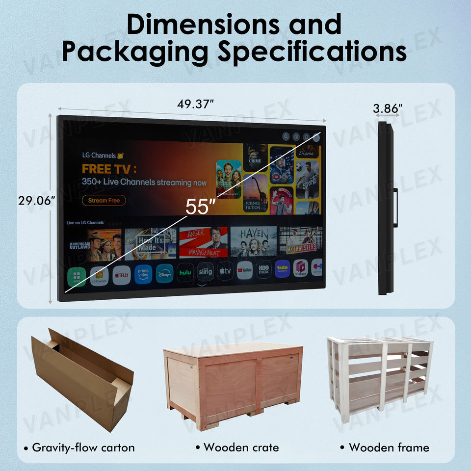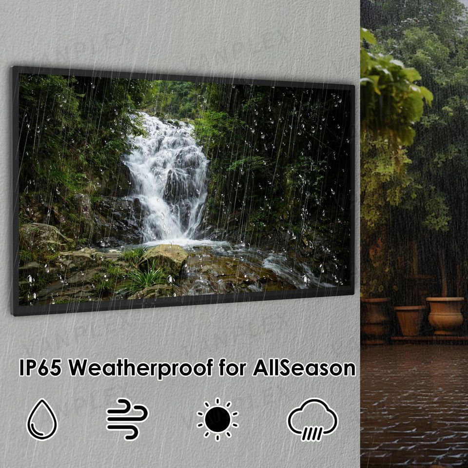 สมาร์ททีวีกลางแจ้งขนาด 55 นิ้ว มาตรฐาน IP65, หน้าจอ 4K UHD ความสว่าง 1000/2500 นิต มองเห็นได้แม้กลางวัน, ระบบปฏิบัติการ WebOS, รองรับ Wi-Fi ใช้งานได้ทุกสภาพอากาศ