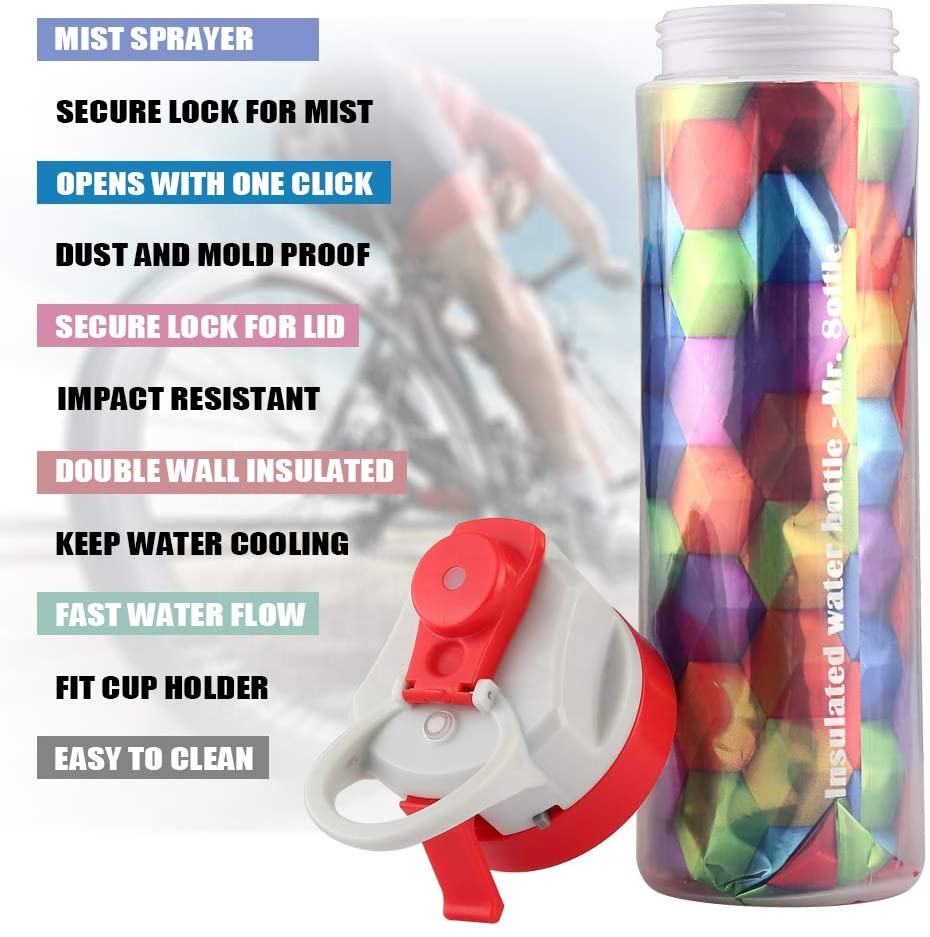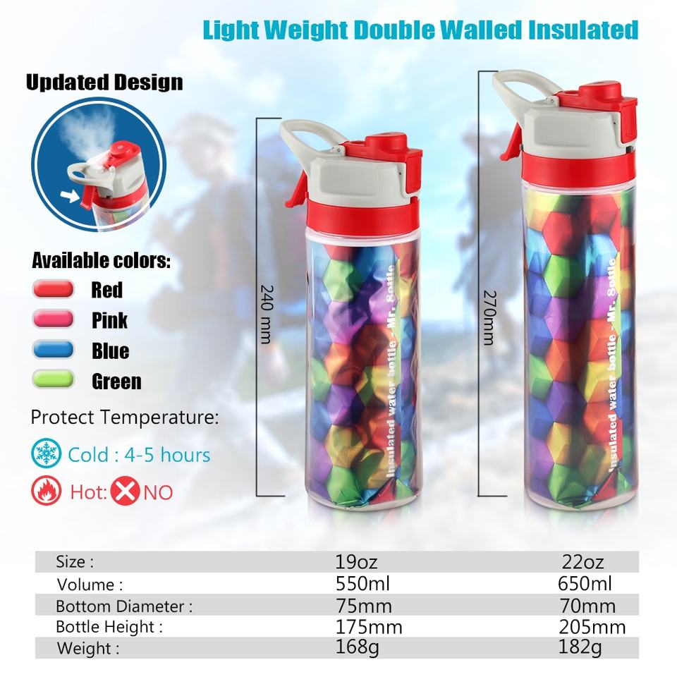 ขวดน้ำนักเรียน 2-in-1 ขนาด 550 มล. ดีไซน์ใหม่ รักษาสิ่งแวดล้อม ผนังสองชั้น เก็บอุณหภูมิ พร้อมฟังก์ชั่นพ่นละอองน้ำ วัสดุ PP นุ่มพิเศษ น้ำหนักเบา