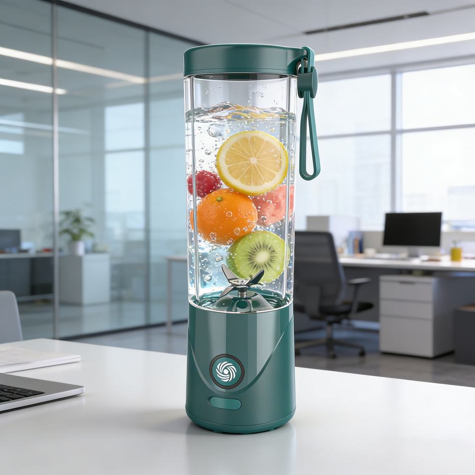 เครื่องปั่นแบบพกพาขนาด 550 มล. 150 วัตต์ ชาร์จผ่าน USB แบตเตอรี่ 2000 มิลลิแอมป์ ใช้งานแบบสัมผัสเดียว ไม่ต้องใช้มือ ใบมีด SUS304 6 ใบ บดน้ำแข็งแบบเทอร์โบ ปลอดสาร BPA ป้องกันการรั่วซึม