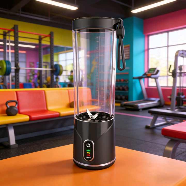 เครื่องปั่นแบบพกพาขนาด 550 มล. ชาร์จผ่าน USB-C พร้อมหัวจ่าย ใช้งานเงียบ และใส่ในที่วางแก้วในรถยนต์ได้