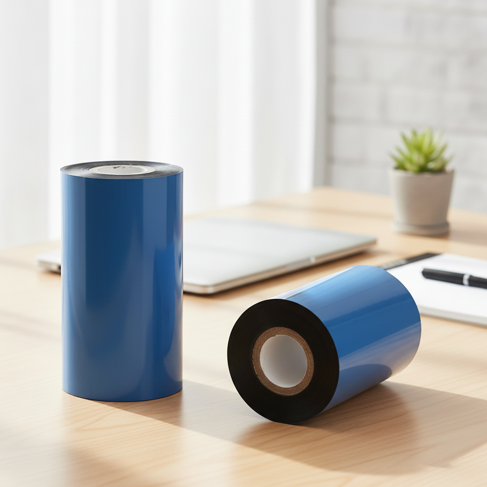 ริบบิ้นถ่ายโอนความร้อนขนาด 55 มม. x 300 ม. หมึกเรซินสีดำ แกนกลางขนาด 1 นิ้ว สำหรับพิมพ์บาร์โค้ด