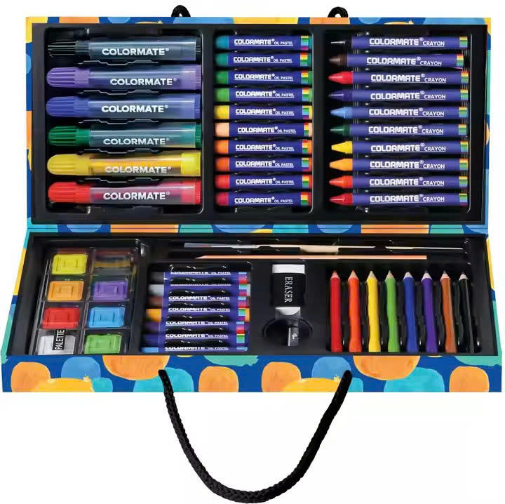 55pc Acrylic Art Set for Kids with Crayons Markers Pencils for School Painting Projects