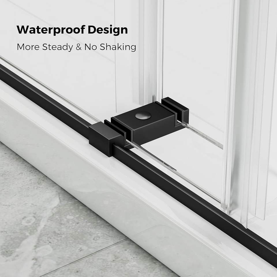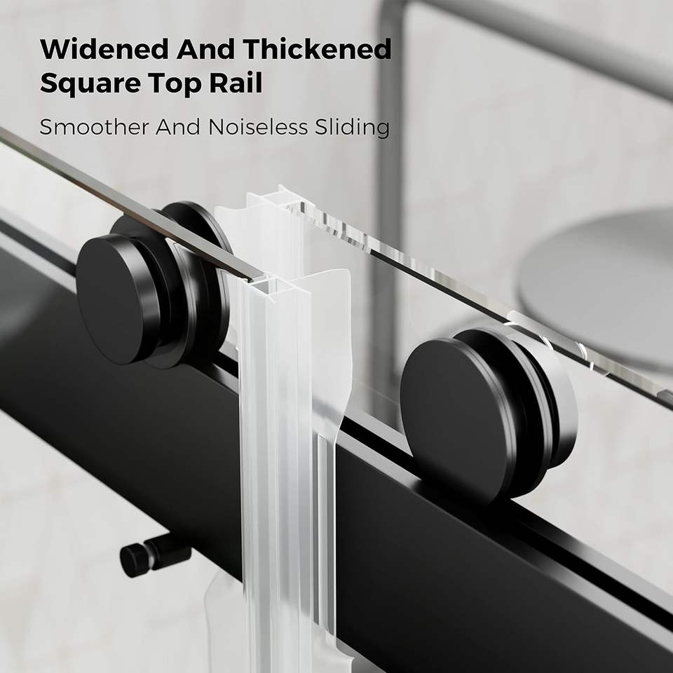 56-60 In. W X 76 In. H Double Sliding Frameless Stainless Steel Matte Black Shower Door Premium 3/8 Inch Thick Tampered Glass
