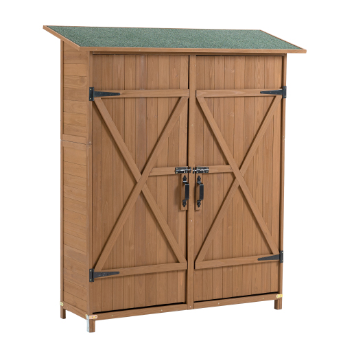 56L X 19.5W X 64H Outdoor Storage Shed Detachable Shelves Pitch Roof HDPE Wooden Tool Storage Shed Lockable Door for Patio Use