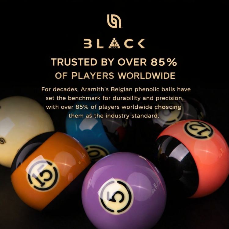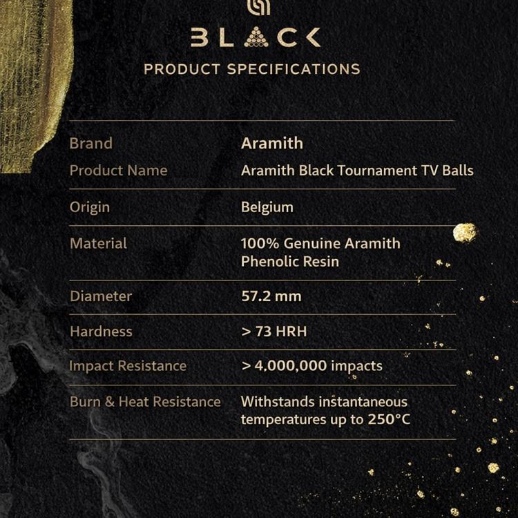 ชุดลูกสนุกเกอร์อารามิธ ทัวร์นาเมนต์ สีดำ ขนาด 57.2 มม. เทคโนโลยีดูราไมธ์ สำหรับการแข่งขันสนุกเกอร์ระดับมืออาชีพ ใช้ในการแข่งขันสนุกเกอร์ชั้นสูง
