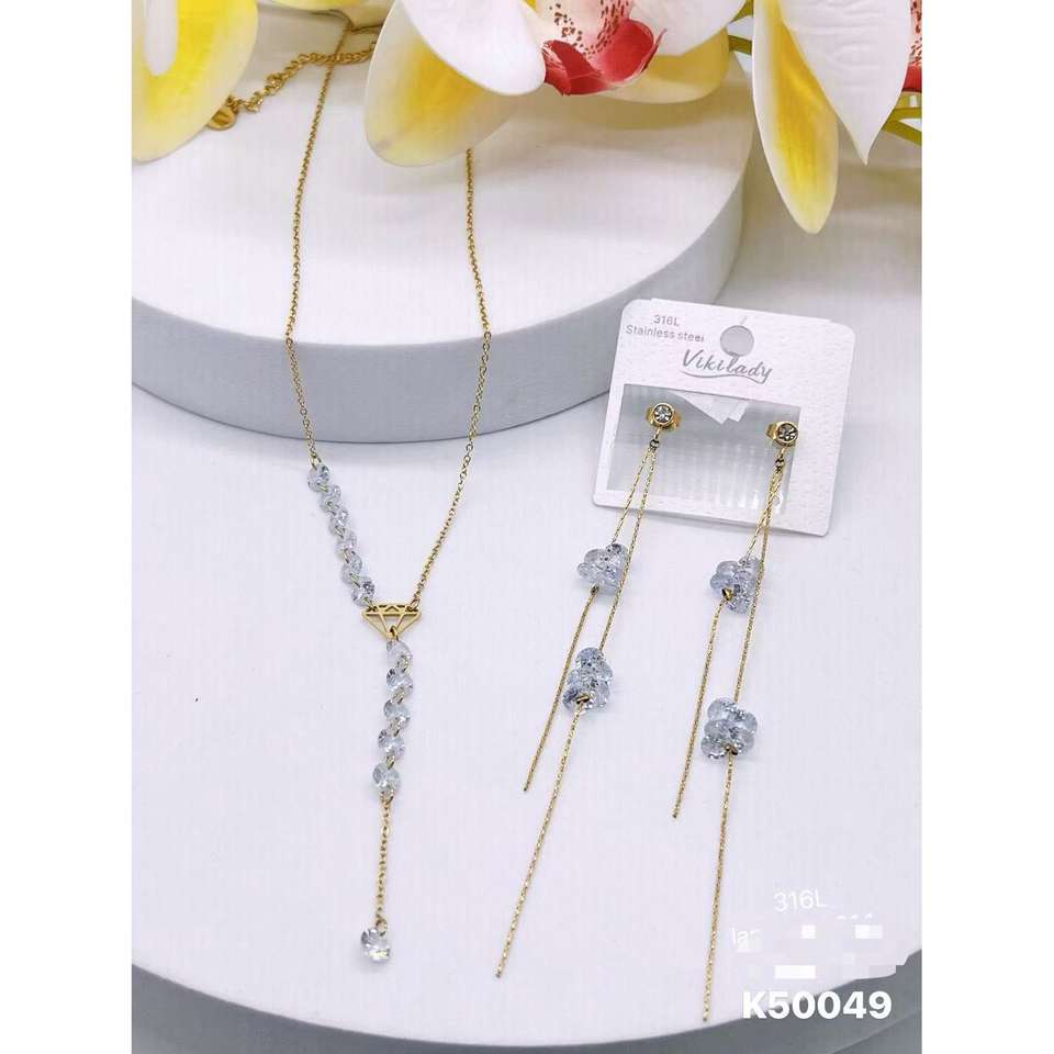 Vikilady ชุดต่างหูสร้อยคอลูกปัดคริสตัลใสมาก585ชุบทอง316L เครื่องประดับชั้นดีทำจากสเตนเลสสตีล