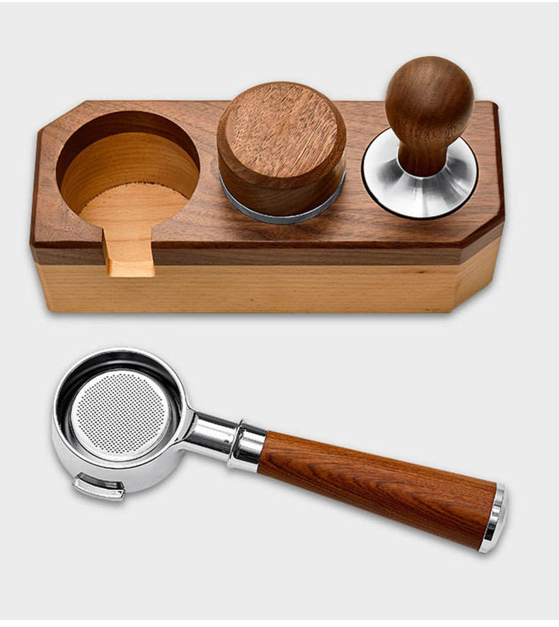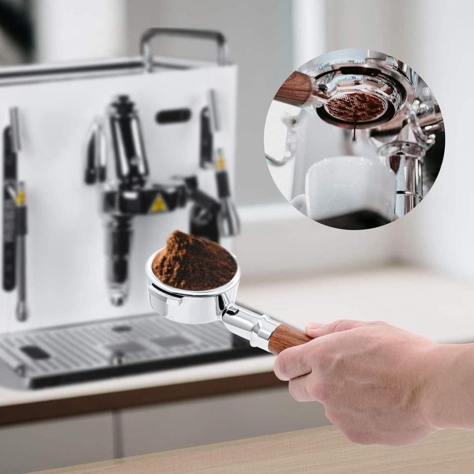 เครื่องชงกาแฟพกพาแบบไม่มีก้นลึก58มม. มี2หูสำหรับ faema E61 expobar E61จรวด E61ECM พร้อมด้ามไม้