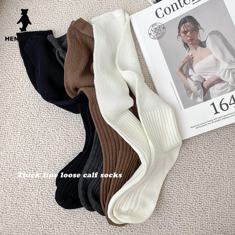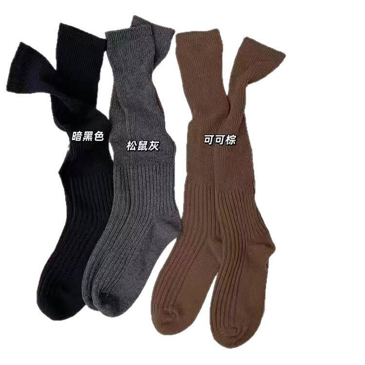 ถุงเท้ายาวแบบลำลองสีทึบใหม่สำหรับฤดูใบไม้ผลิและฤดูใบไม้ร่วง58V ถุงเท้าแบบเรียงซ้อนกันหนาสี่ฤดู