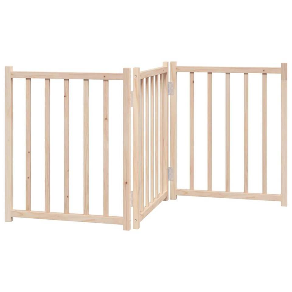 ประตูไม้สนแท้ขนาด 59.1 นิ้ว สำหรับสัตว์เลี้ยง แบบพับได้ 3 บาน พร้อมคอกกั้น
