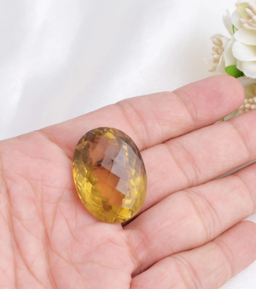 59.10กะรัต1ชิ้นน้ำผึ้งควอตซ์เหลี่ยมเพชรพลอยรูปไข่แฟนซีสำหรับทำเครื่องประดับที่ดีอัญมณีธรรมชาติหลวม