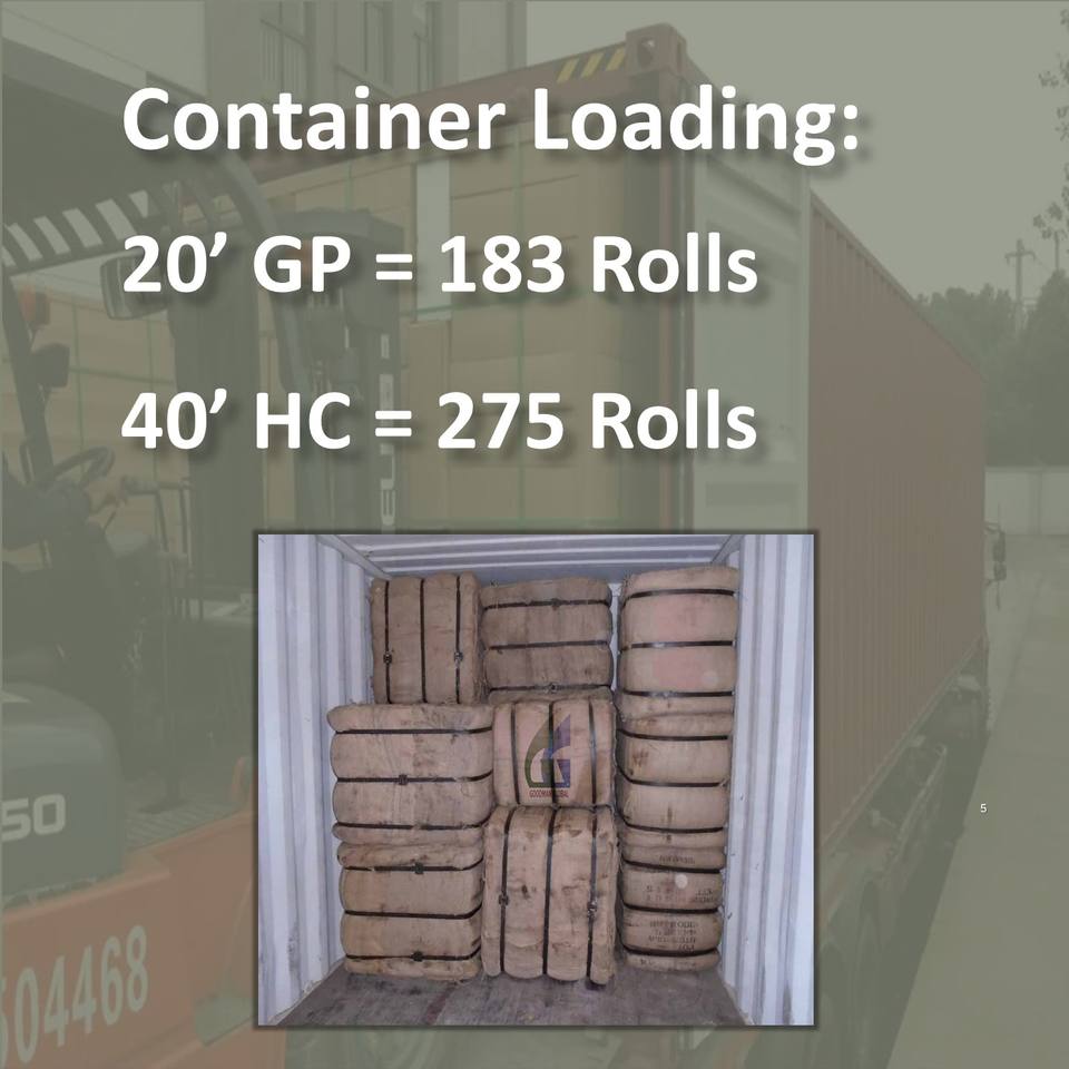 183 ม้วนต่อตู้คอนเทนเนอร์ขนาด 20 ฟุต หรือ 275 ม้วนต่อตู้คอนเทนเนอร์ HC ขนาด 40 ฟุต