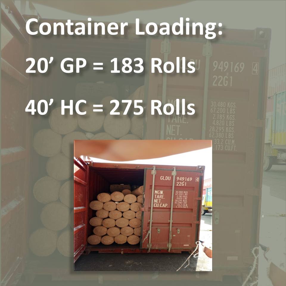 Loading:183 rolls per 20ft or 275 rolls per 40ft HC Container