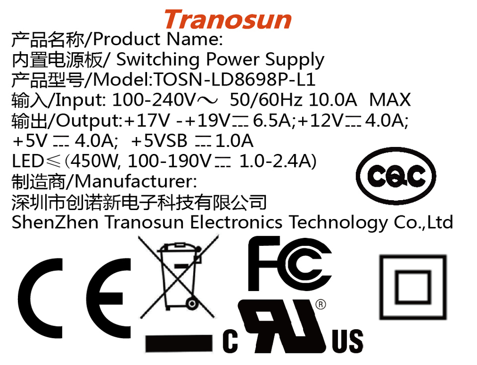 TOSN-LD8698P-L/Hหมายเลขรุ่น