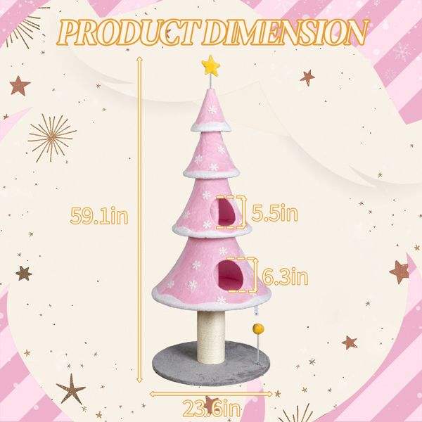 ต้นคริสต์มาสขนาดใหญ่ 59 นิ้ว พร้อมคอนโด 2 หลัง ที่ลับเล็บ ของเล่นขนนุ่ม และโครงสร้างแข็งแรง