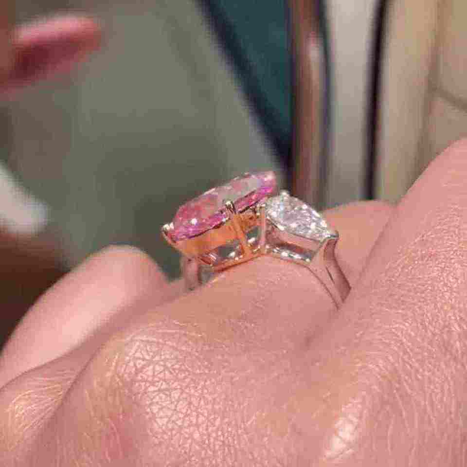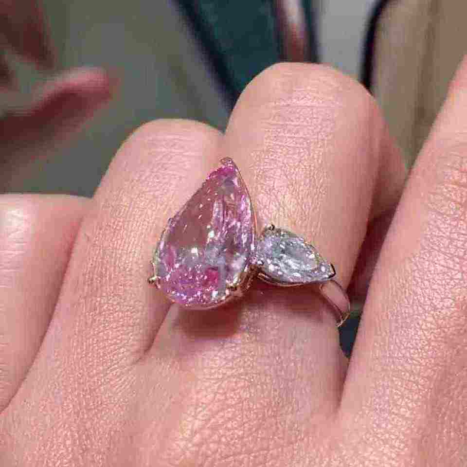 แหวนเพชรทรงลูกแพร์สีชมพูสดใส 5 กะรัต VS1 เจียระไนแบบบริลเลียนท์ เพาะเลี้ยงในห้องปฏิบัติการ รับรองโดย IGI ชุบโรเดียม ทอง 9K สไตล์วินเทจ หรูหรา
