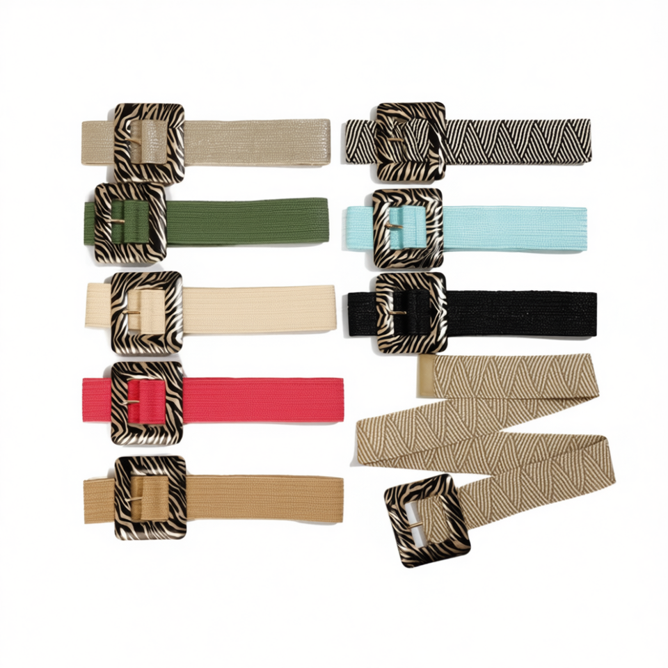 เข็มขัดผ้าพิมพ์ลายม้าลายขนาด 5 ซม. พร้อมหัวเข็มขัด PP
