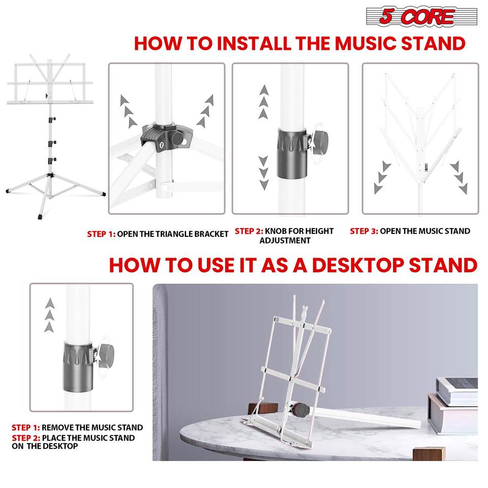 ขาตั้งดนตรีแบบพกพา 5Core ปรับระดับได้ พับเก็บได้ ทำจากอลูมิเนียม พร้อมกระเป๋าสำหรับใส่เครื่องดนตรี