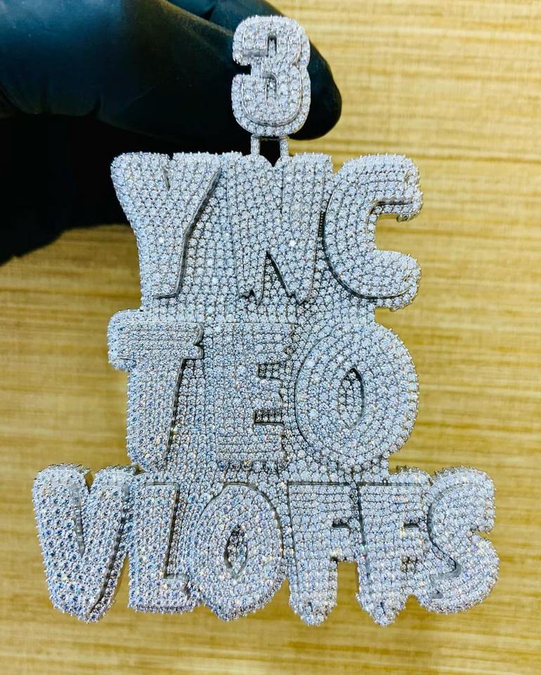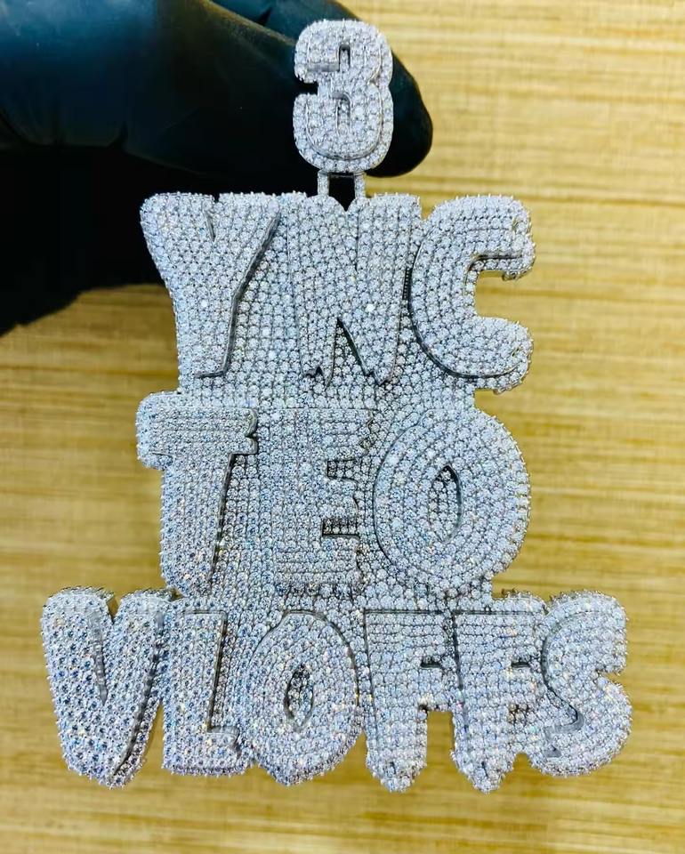 โมอิสซาไนต์แท้ทรงกลม 5 กะรัต เงินแท้ 925 ชุบทองคำขาว 14K จี้ห้อยคอผู้ชายแบบกำหนดชื่อได้ HUMERA JEWELS