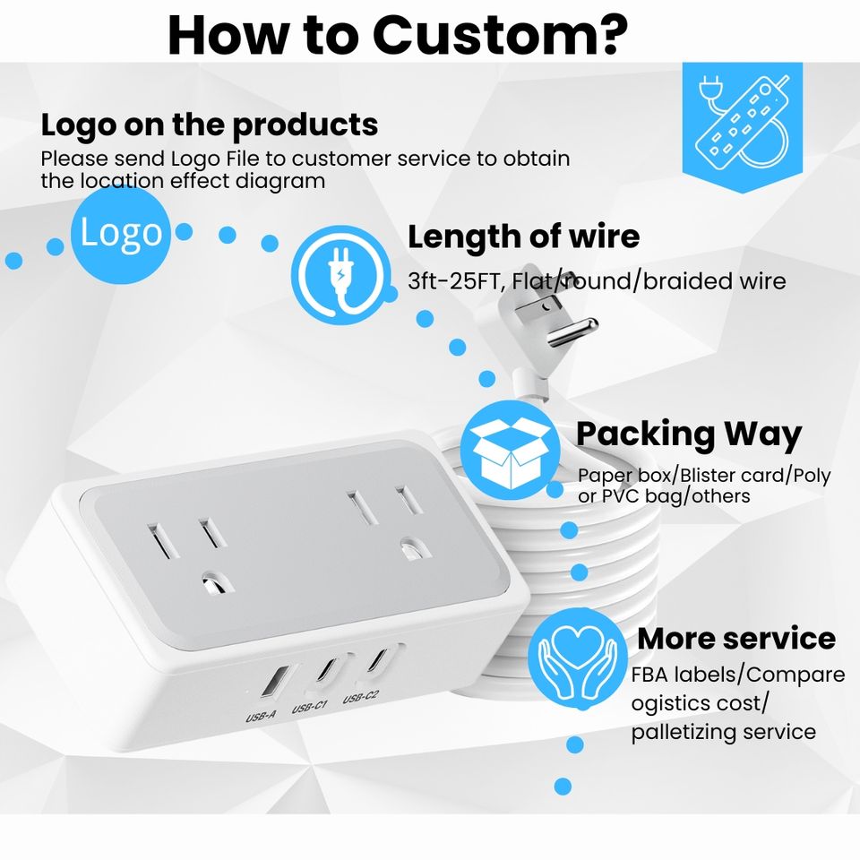 สายไฟถัก5FT เอบีเอส2AC กันไฟกระชาก3USB สายไฟฟ้าทองแดงสำหรับเดินทางสำนักงานดีไซน์กะทัดรัด