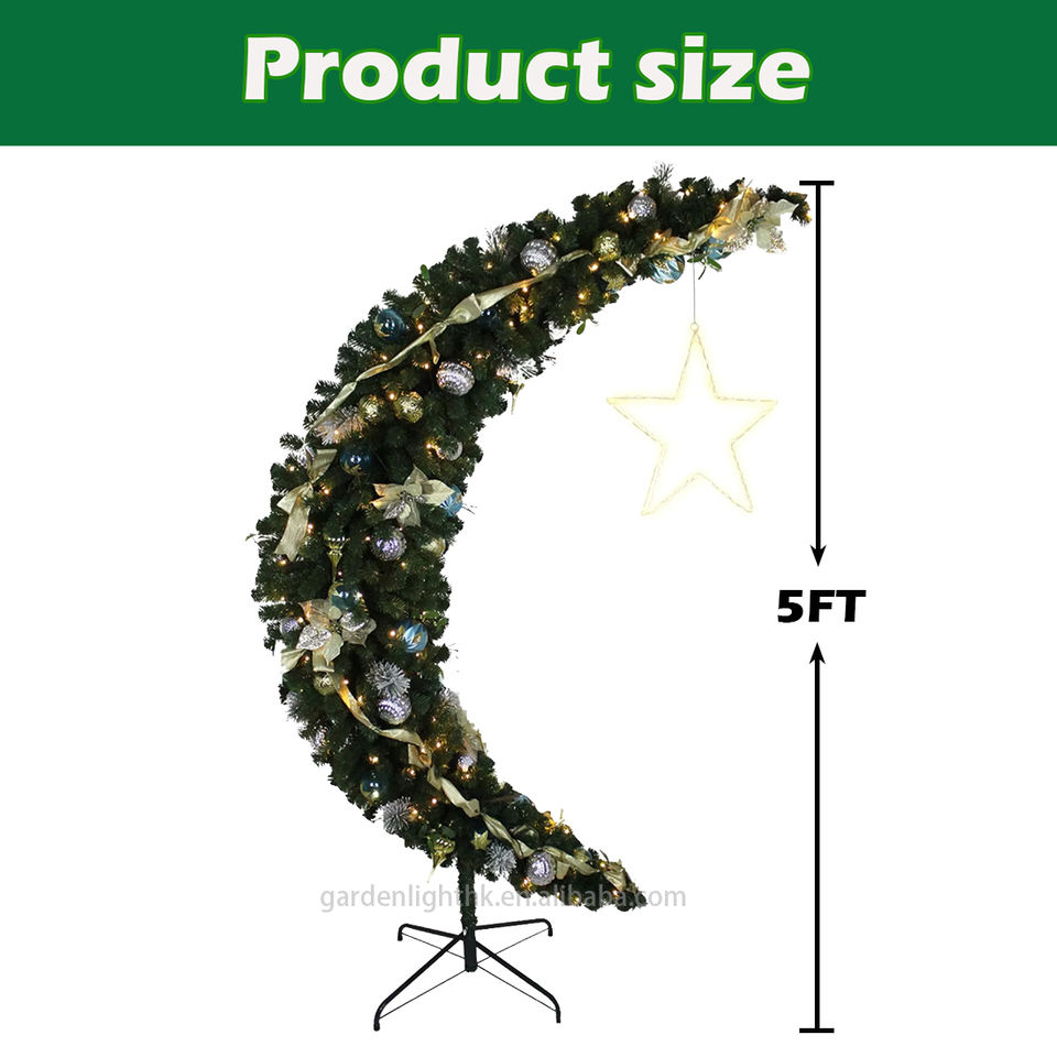Name:5FT Moon Shaped Christmas Tree with LED Lights & Star Ornaments