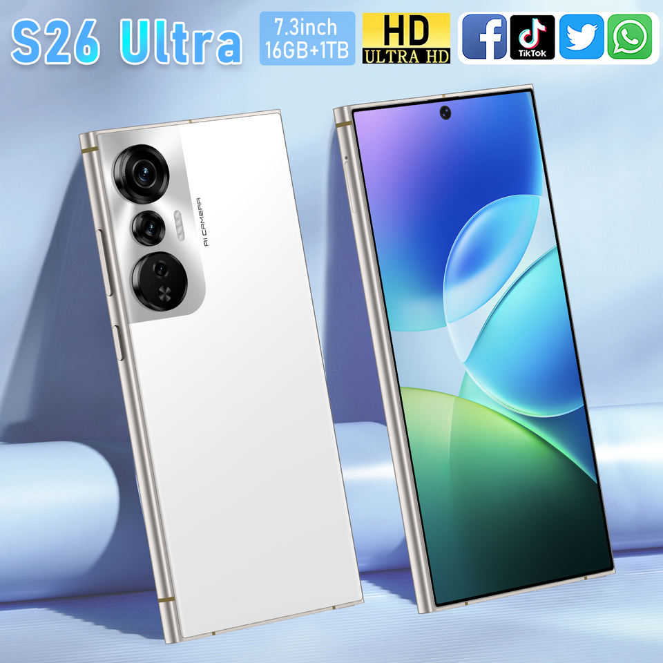 5G S26การ์ดคู่2025เฉียบโทรศัพท์มือถือใหม่7.3นิ้ว HD + 1440*3040 16GB + 1TB 72MP + 108MP 6800mAh Android 14ผู้ขายดีที่สุด