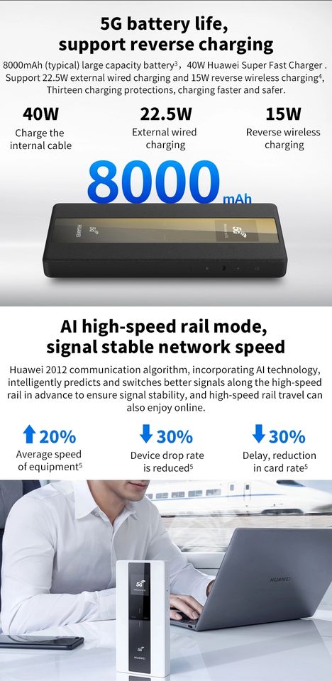 5G Mobile WiFi Pro Mini Pocket WiFi ไร้สายเราเตอร์แบตเตอรี่สำรองหัวเว่ย-E6878 -370/870