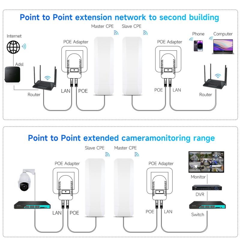 อุปกรณ์เชื่อมต่ออินเทอร์เน็ตไร้สายระยะไกล 5GHz 3 กม. แบบจุดต่อจุด สำหรับภายนอกอาคาร ระดับ IP65 ป้องกันสภาพอากาศ เหมาะสำหรับใช้งานกลางแจ้ง MT7628KN