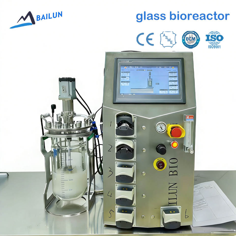 ถังหมักแบบมีแจ็คเก็ตกระจกสองชั้นขนาด 5 ลิตร พร้อมระบบกวน สำหรับการเพาะเลี้ยงแบคทีเรียและชีววิทยาสังเคราะห์ พร้อมราคา